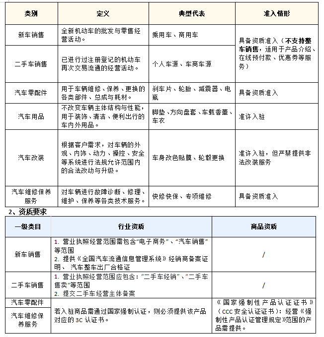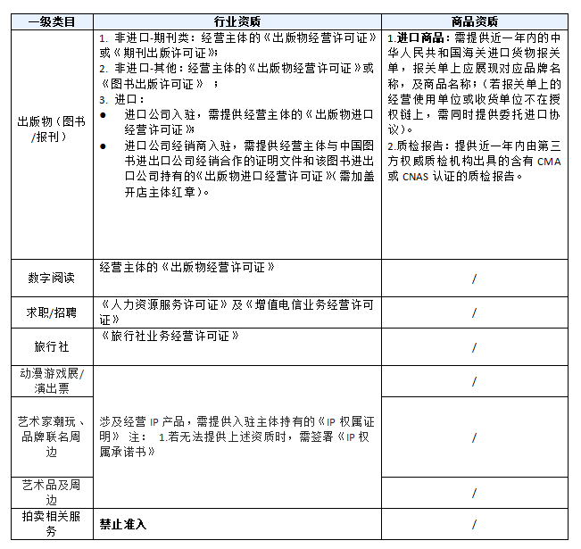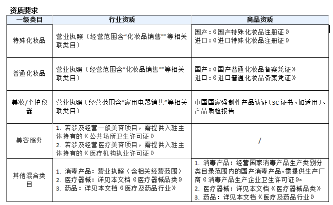 - 本规范旨在基于国家现行法律法规及平台管理要求,为常见经营类目提供准入指引。所列举的资质清单并非穷尽,您应根据所经营类目的具体性质,主动查询、理解并满足全部监管要求,提交所需的各项资质证明。