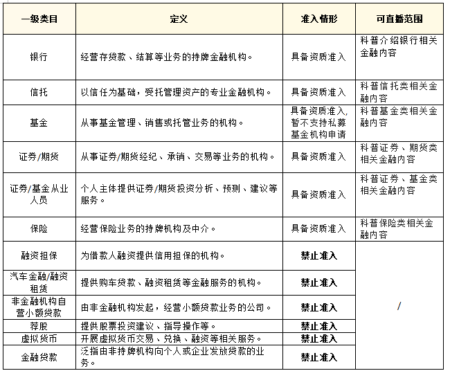 当前平台允许的金融相关服务,仅限于辅助性、信息性的非经营性活动,包括金融资讯、内部培训、品牌展示及金融知识咨询。严禁开展任何需持牌的金融销售、交易、募资等经营性业务。