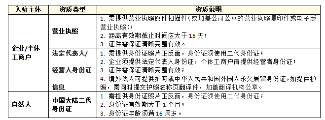 - 平台将结合国家相关法律规定、各行业发展动态、消费者购买需求及平台需要,不定期更新入驻标准并向商家公示。