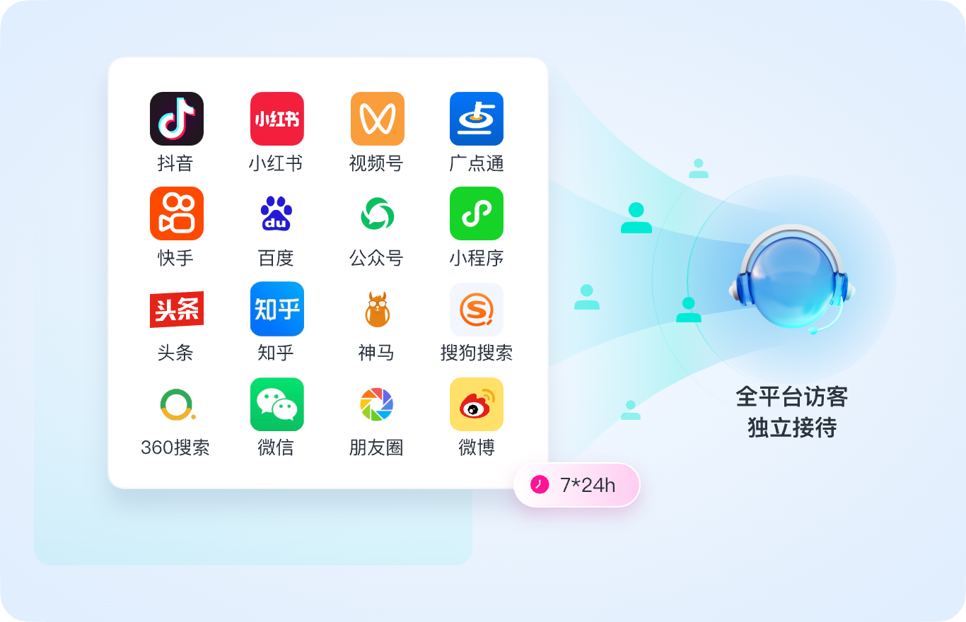 7*24h接待咨询,主动沟通,获取关键信息。